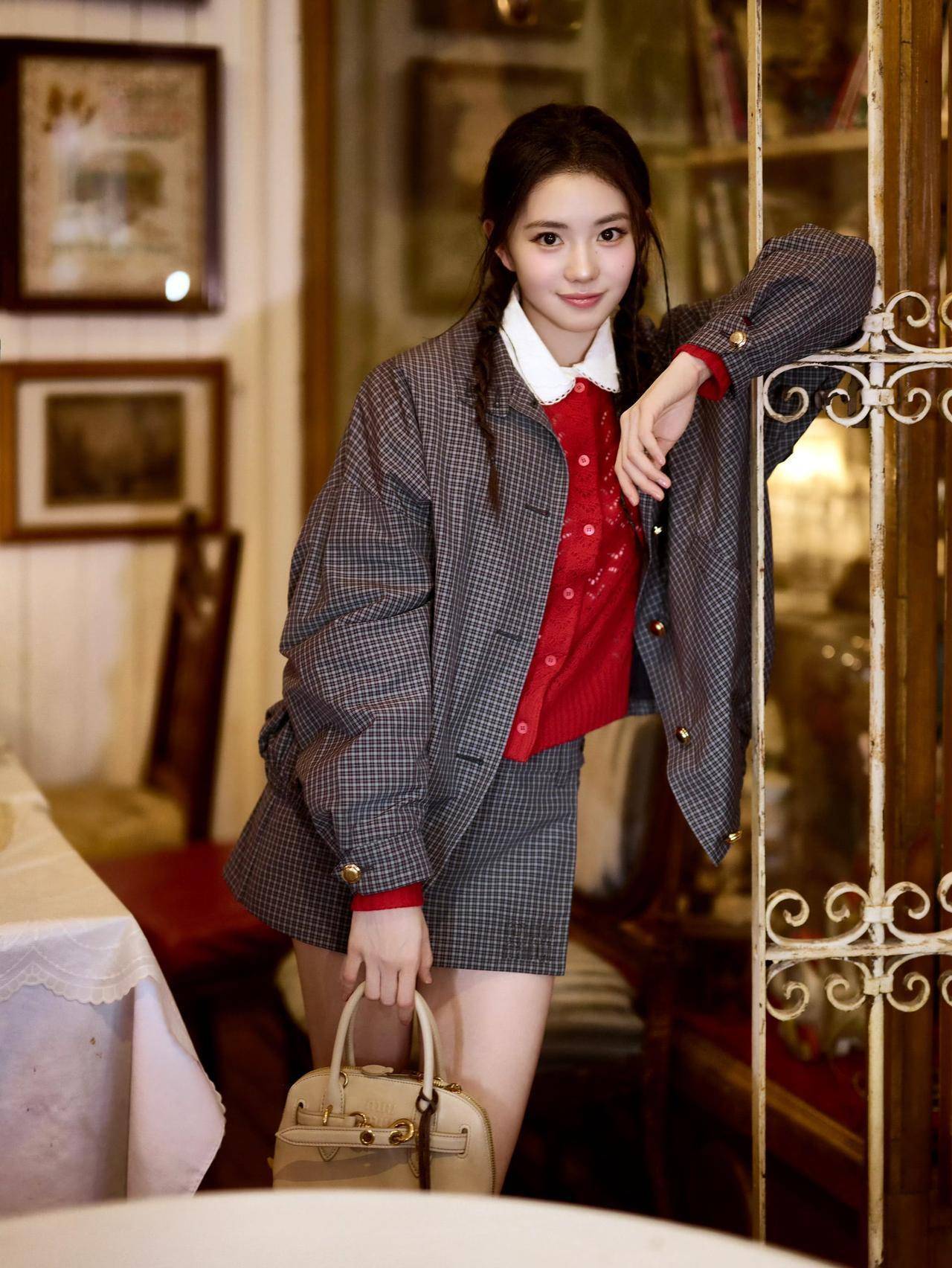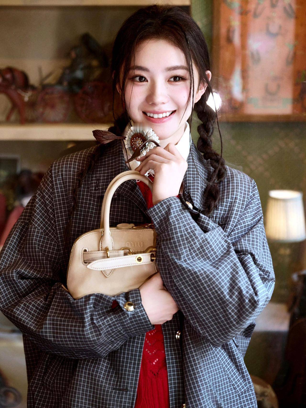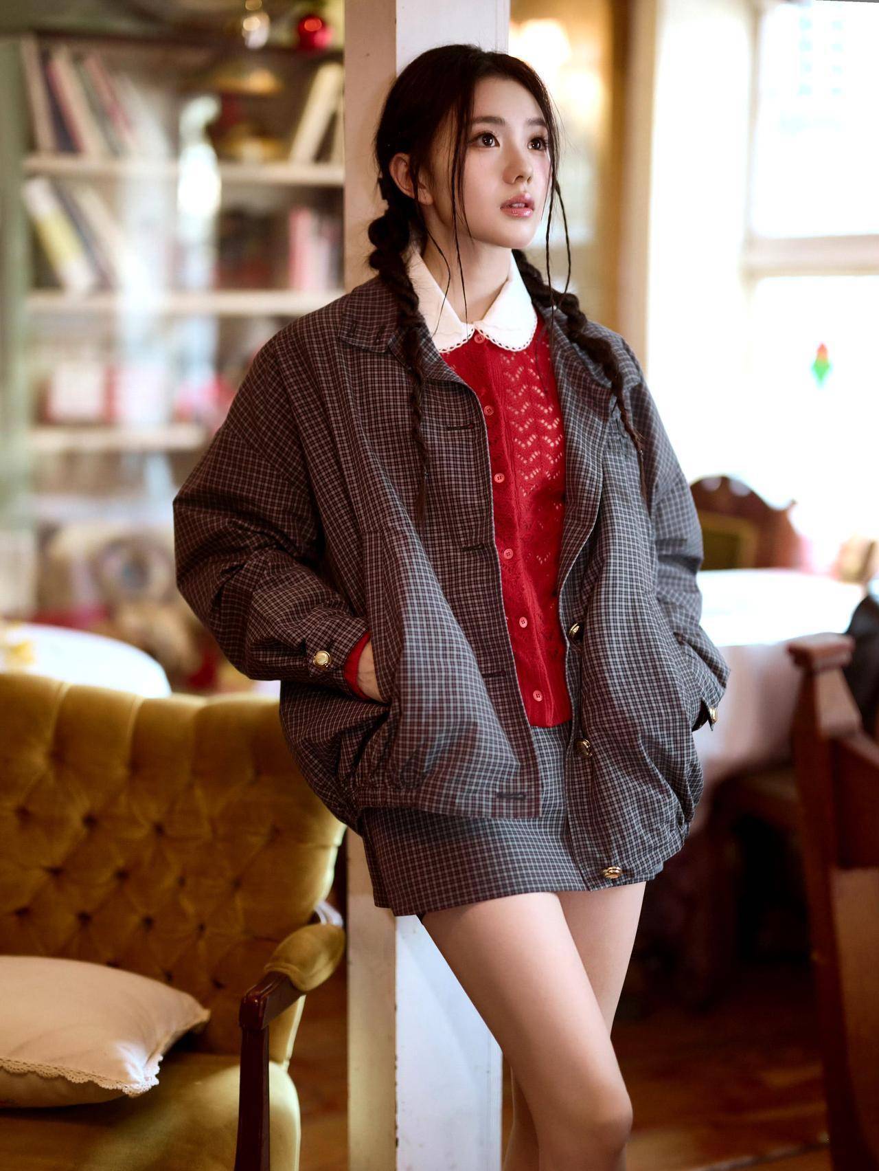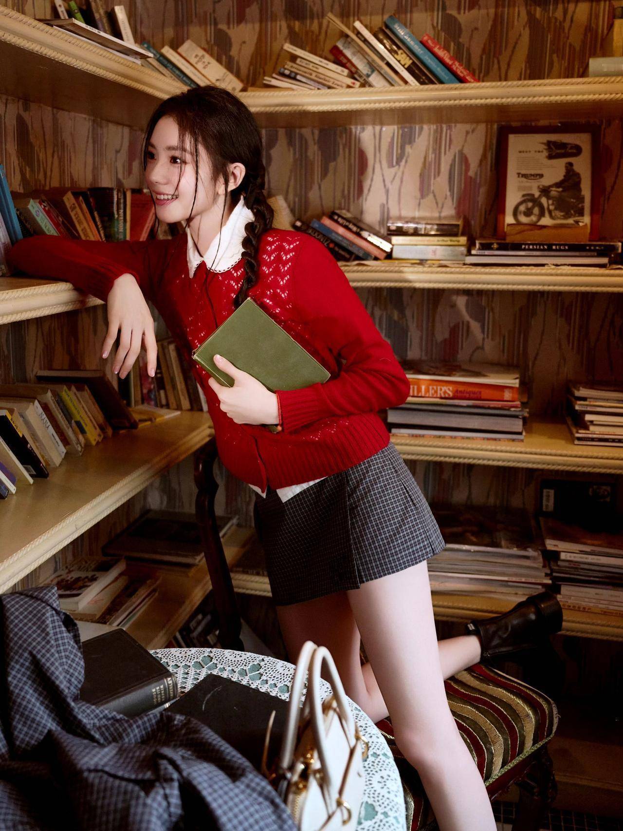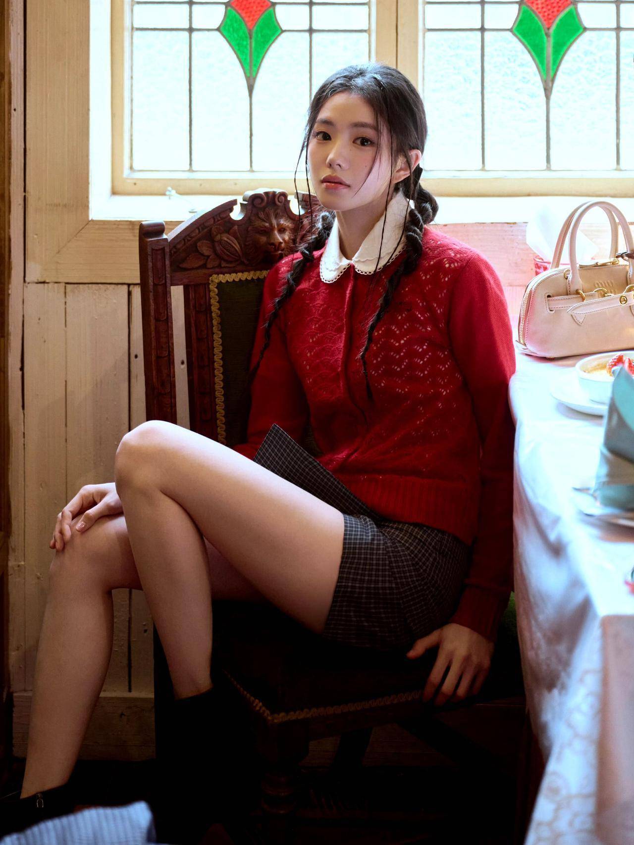 没有繁杂过度的妆容造型,也没有夸张失真的滤镜修饰,仅仅是简单的双麻花辫,搭配一件红毛衣,就将少女的灵动与娇憨展现得淋漓尽致。