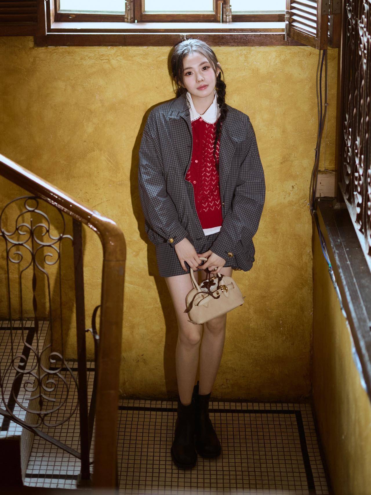 不得不说,她与这种复古学院风简直适配度满分,自带的胶片感滤镜,每一张照片都美得如同壁纸一般。